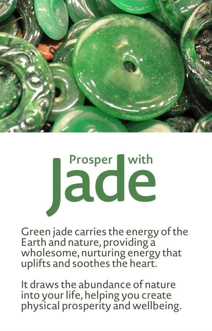 Jade is celebrated in metaphysical and crystal healing traditions for its deeply nurturing and balancing energy. Often called the “Stone of Serenity” or “Stone of Heaven,” jade is believed to promote harmony, attract prosperity, and protect against negative influences. It’s associated with the heart chakra, supporting emotional healing, compassion, and self-love, while encouraging relationships rooted in trust and understanding. Many believe jade helps clear the mind, improve focus, and inspire wise decision-making, making it a favorite for those seeking balance in both personal and professional life. Spiritually, it’s thought to connect the physical and spiritual realms, offering grounding energy while also inspiring growth and renewal. Jade is also linked to vitality and longevity, symbolizing a steady flow of life force energy—making it a stone people turn to for both physical well-being and inner peace.